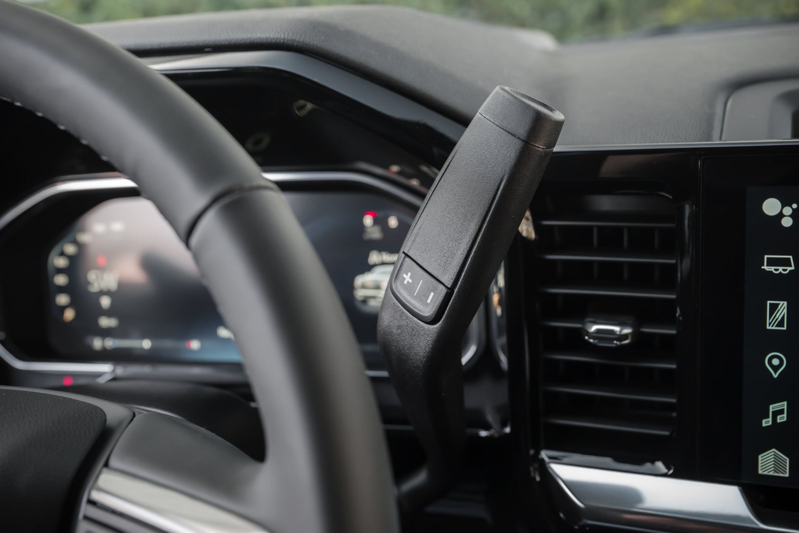 - Leather-wrapped steering wheel