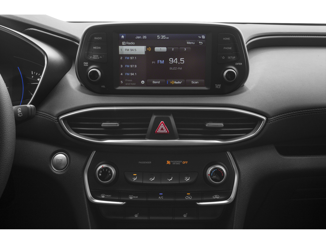- Radio: AM/FM/MP3 Display Audio -inc: 7" screen, Apple CarPlay & Android Auto, Bluetooth® hands-free w/wireless audio streaming, voice recognition, steering wheel audio, cruise and phone controls, dual front and rear 2.1 amp USB charge ports, SiriusXM, HD Radio and Blue Link connected car system