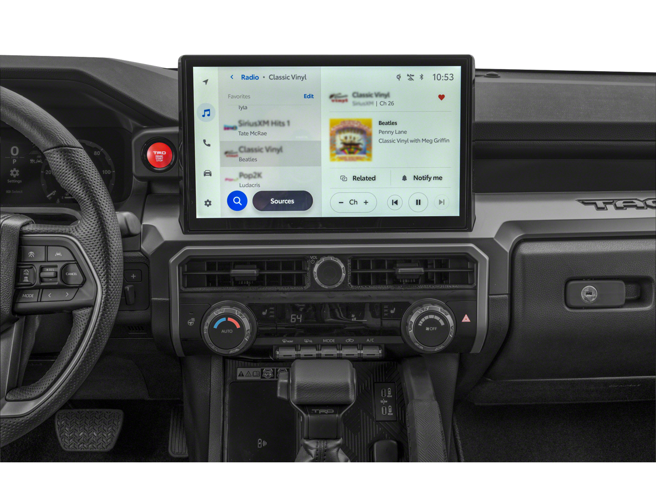 • Radio: 8" Toyota Audio Multimedia -inc: touchscreen, 6 speakers, wireless Apple CarPlay and Android Auto compatibility and SiriusXM w/3-month Platinum Plan trial subscription, See toyota.com/audio-multimedia for details
